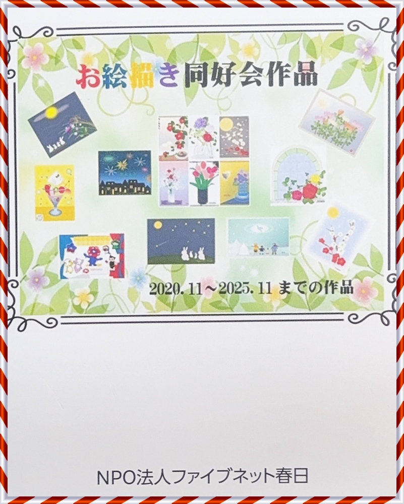 作品集は、毎月1回お絵描き同好会を開催し、「お雛様・ひまわり・フルーツパフェ・カーネーションとかすみそう・ラベンダー」などテーマにそって、Wordで描いた作品を2020年11月から2025年11月までの5年間分の作品数261点が掲載されています。