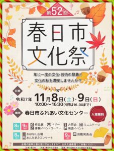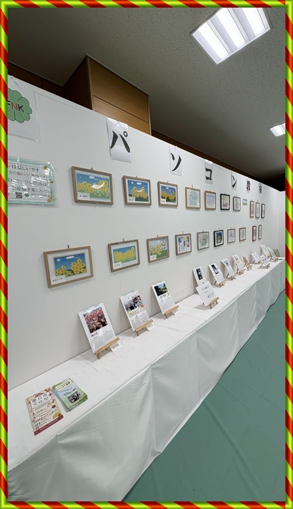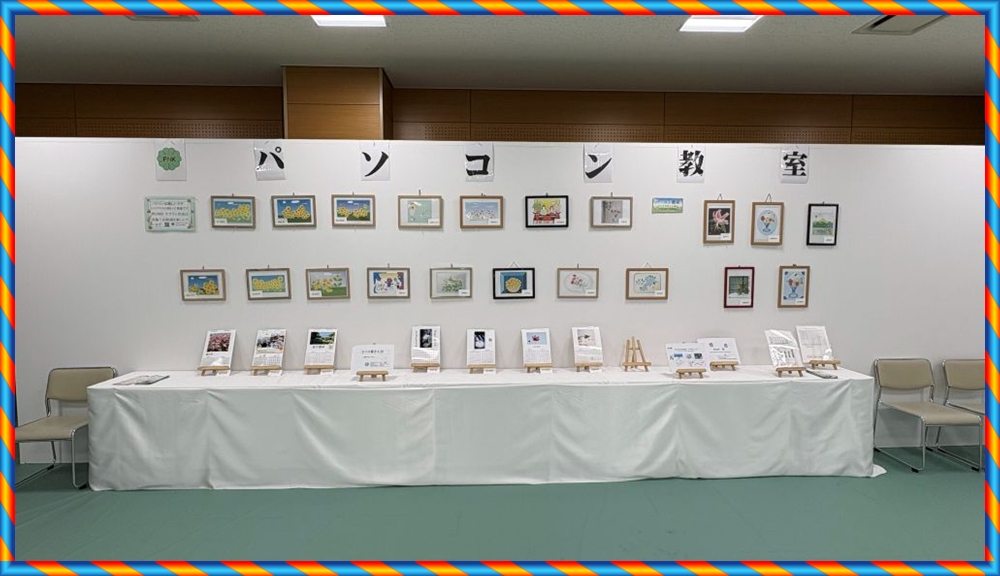 第52回春日市文化祭が、8日(土曜)・9日(日曜)に春日市ふれあい文化センターにおいて開催されましたのでファイブネット春日も展示部門に参加し、作品を展示しました。ファイブネット春日の展示コーナーは、同センター・旧館2階の多目的室Aで、同センターで開講中のパソコン教室受講生やお絵描き同好会の皆さんの作品(カレンダー・お絵描き)、講座使用のテキストを展示しました。展示いたしました作品は、いずれも個性的で、心のこもった力作です。